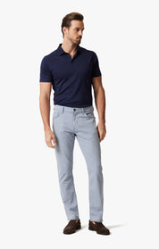 With a sleek light blue hue and dimensional diagonal pattern that adds movement and texture. A classic straight leg fit is sleek yet comfortable and has just the right amount of stretch to let you move freely and easily. Wear them cuffed to expose the darker interior wash.