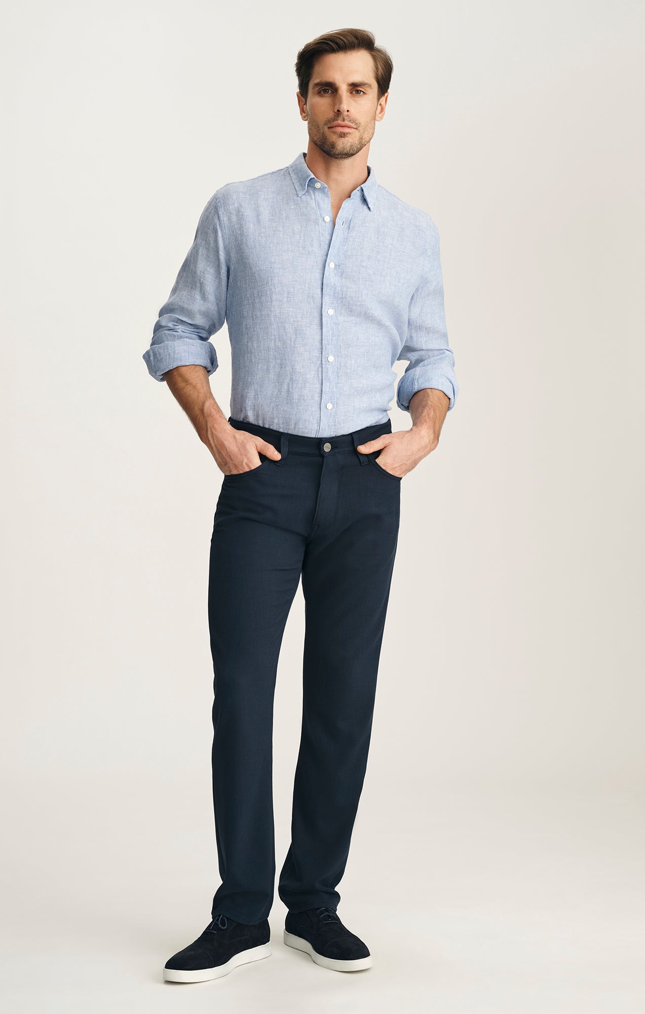 Embrace the ease of summer in this luxurious linen button-up. Long sleeves add a refined touch, while the regular fit offers all-day comfort. Finished with classic buttons and a gently curved hem, the soft blue hue delivers timeless sophistication for every warm-weather occasion.